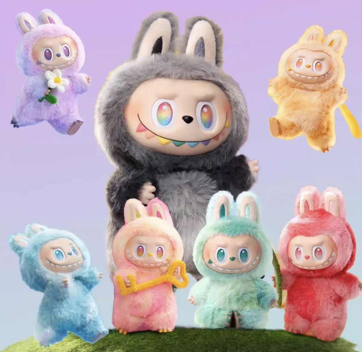 You’ll unbox one of 7 energy-charged Labubu plush keyrings: